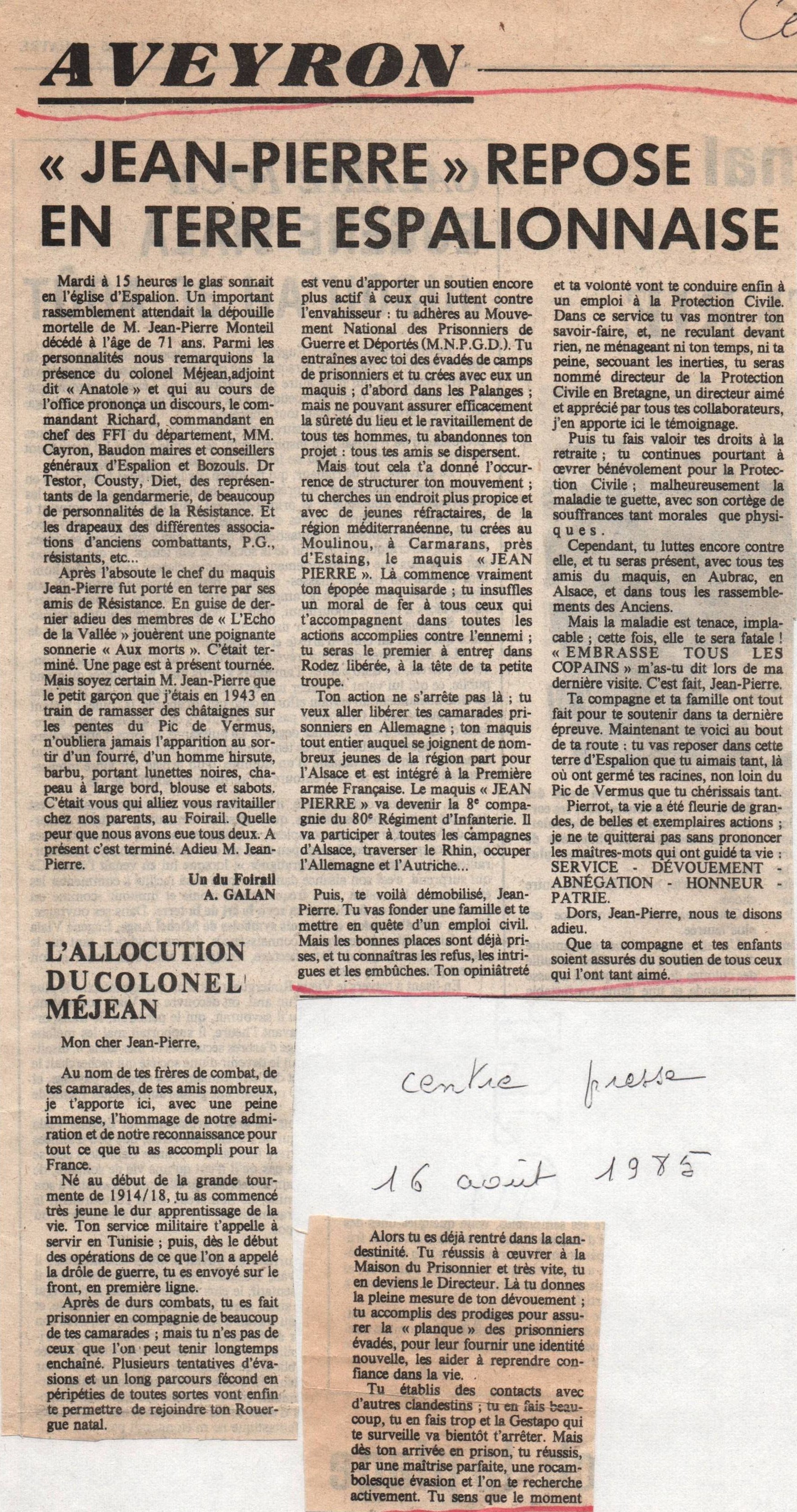 2025/08/20 Hommage au Maquis Jean-Pierre (Bulletin d’Espalion)